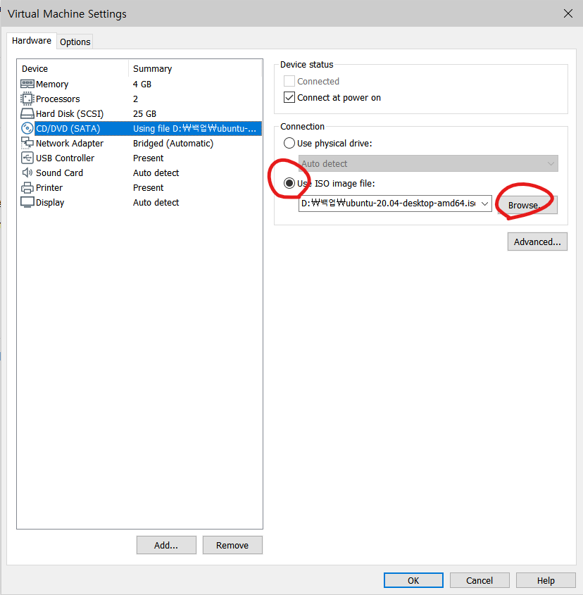 설치했던 우분투이미지를 넣어줍니다.